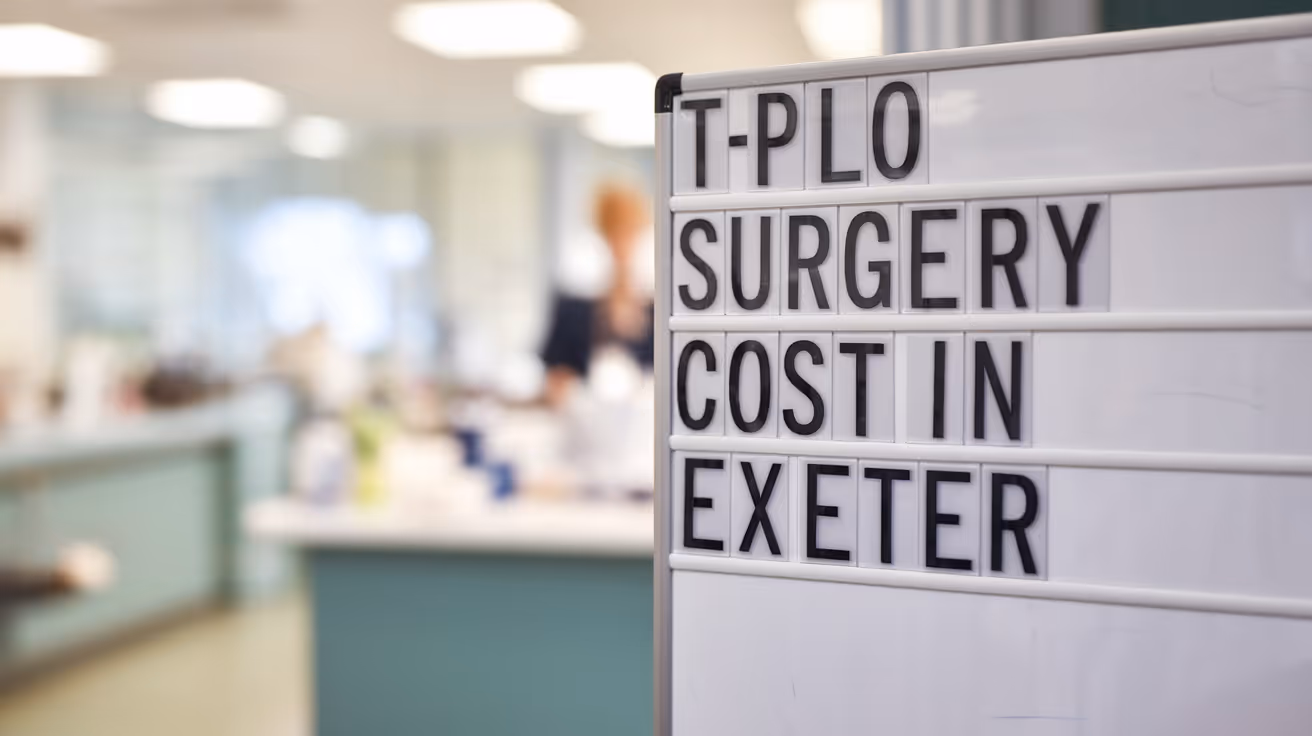- Low estimate in Exeter — Some clinics offer TPLO surgery starting around $3,000. These lower prices may reflect less experienced surgeons, fewer included services, or basic implant options. Owners should consider potential compromises in post-op care or follow-up when choosing lower-cost options.