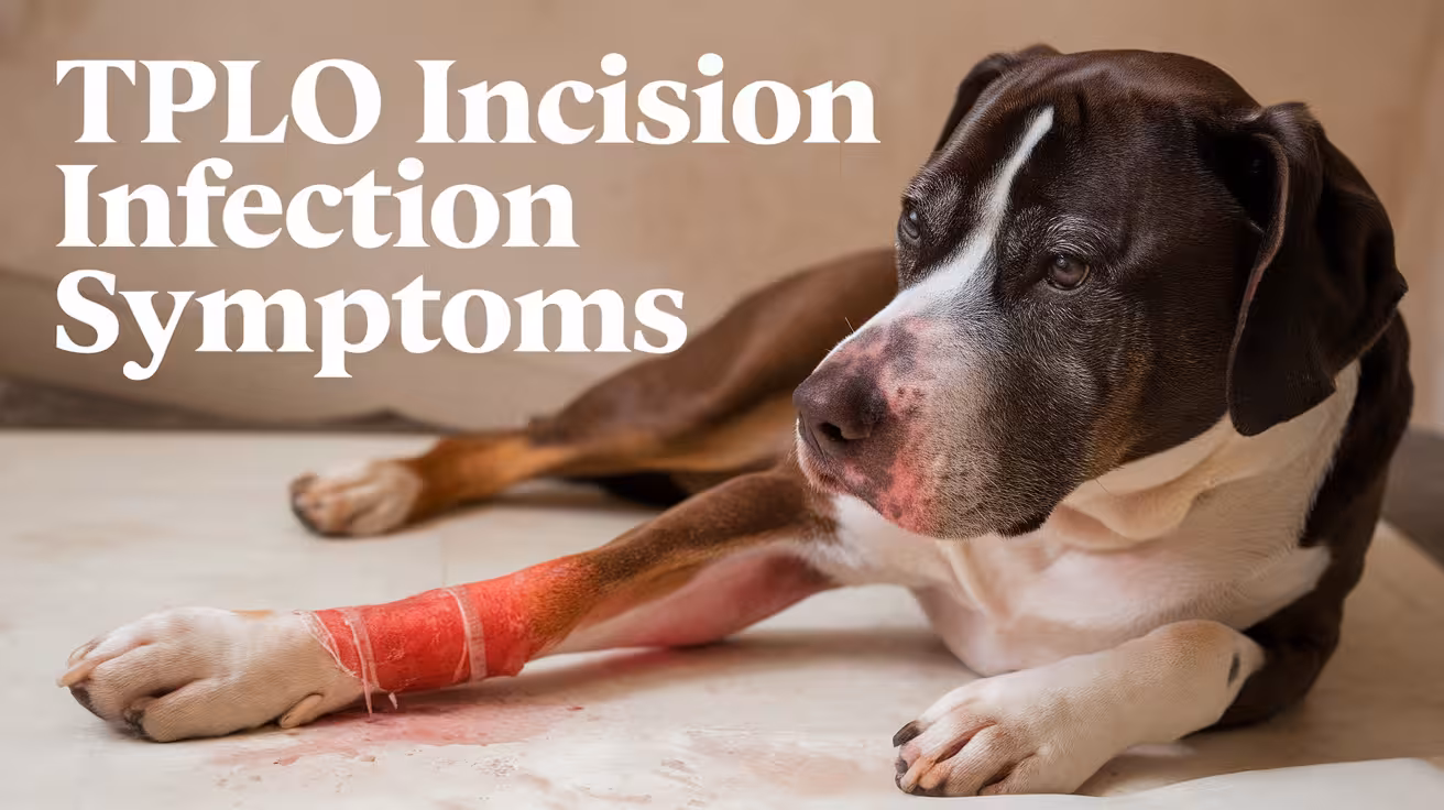 Una infección en la incisión de TPLO puede presentar signos como enrojecimiento, hinchazón, calor y secreción anormal (líquido amarillento, parecido al pus o con mal olor). La incisión puede doler y su perro podría lamerse con más frecuencia, tener letargo, fiebre o reticencia a caminar. Si nota alguno de estos síntomas, contacte a su veterinario de inmediato para que lo evalúe y le indique tratamiento.